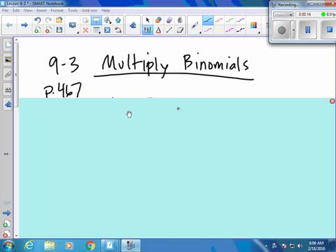 Algebra Lesson 9-3 "Multiply Binomials"