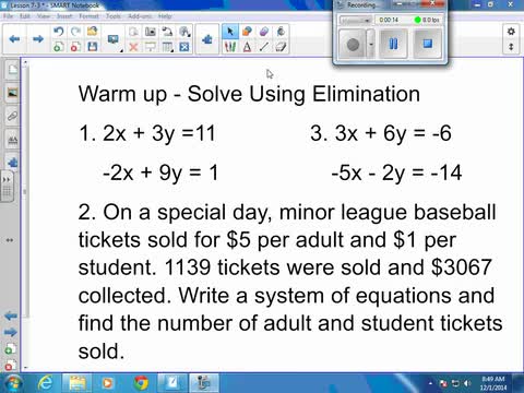 Algebra Lesson 7-3 Solving Systems of Equations Using Elimination