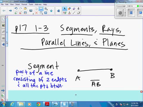 Geometry Lesson 1-3 Segments, Rays, Parallel Lines and Planes