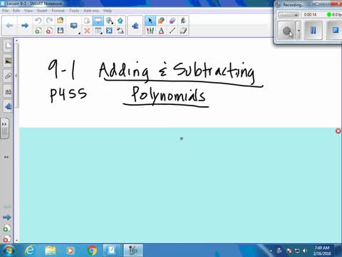Algebra Lesson 9-1 Adding & Subtracting Polynomials