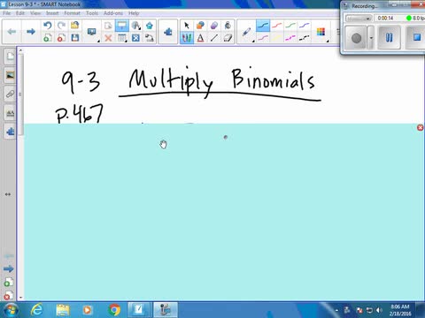 Algebra Lesson 9-3 Multiplying Binomials