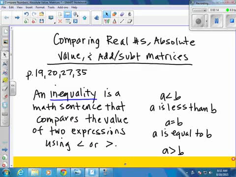 Algebra Lessons 1-3 to 1-5 Comparing Real Numbers, Absolute Value, and Adding & Subtracting Matrices