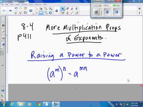 Algebra Lesson 8-4 More Multiplication Properties of Exponents